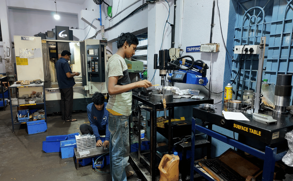 Headquartered in Bengaluru’s Kalanagar, KG Halli, Jalahalli West, one of South India’s premier industrial zones, our facility is equipped with advanced CNC and VMC machining centers, backed by a team of skilled engineers and technicians committed to achieving exceptional tolerances and consistent quality. This strategic location offers seamless access to logistics, suppliers, and robust industrial infrastructure — enabling us to deliver faster and smarter.